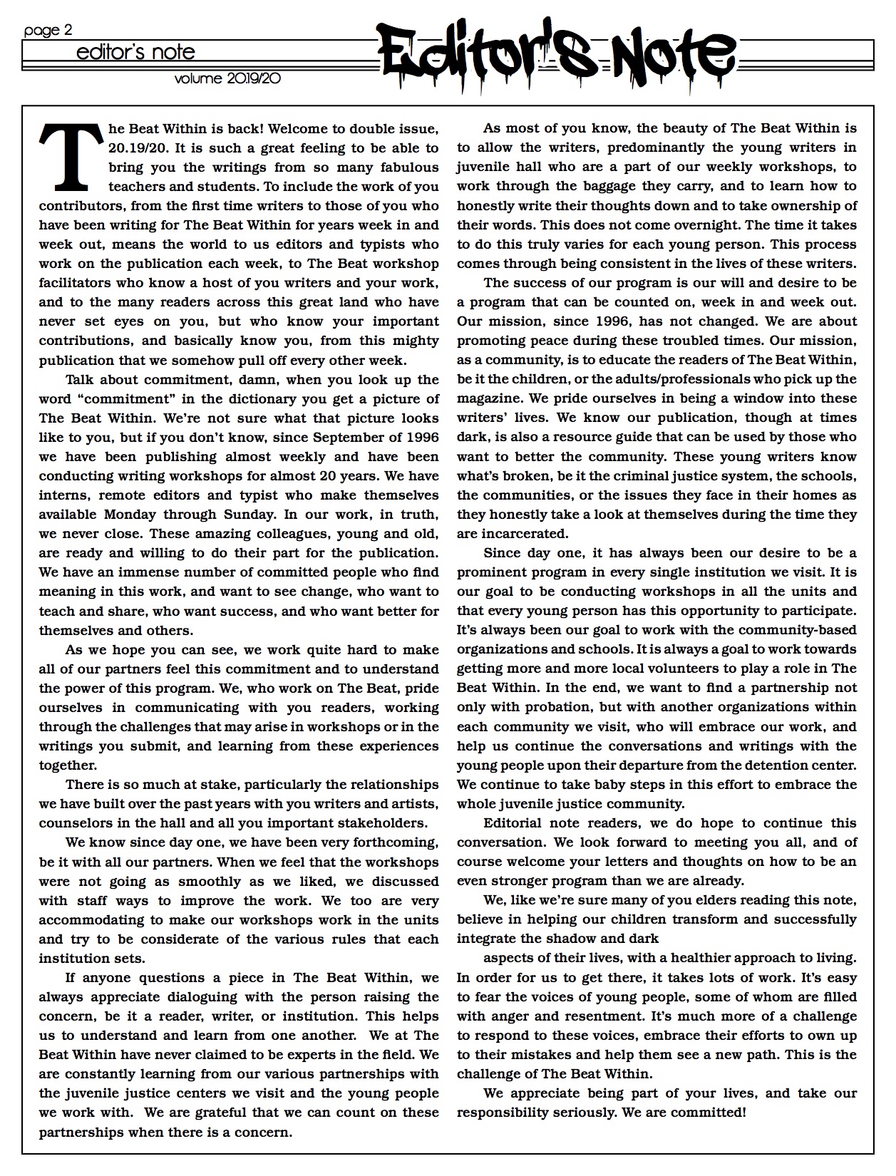 VOLUME 20.19/20 May 26, 2015May 26, 2015 mpau@thebeatwithin.orgLatest Publication Please contact Lisa Lavaysse if you would like to purchase the full PDF or a printed copy of this latest issue. Share this: Share on Facebook (Opens in new window) Facebook Share on X (Opens in new window) X Share on Pinterest (Opens in new window) Pinterest Email a link to a friend (Opens in new window) Email