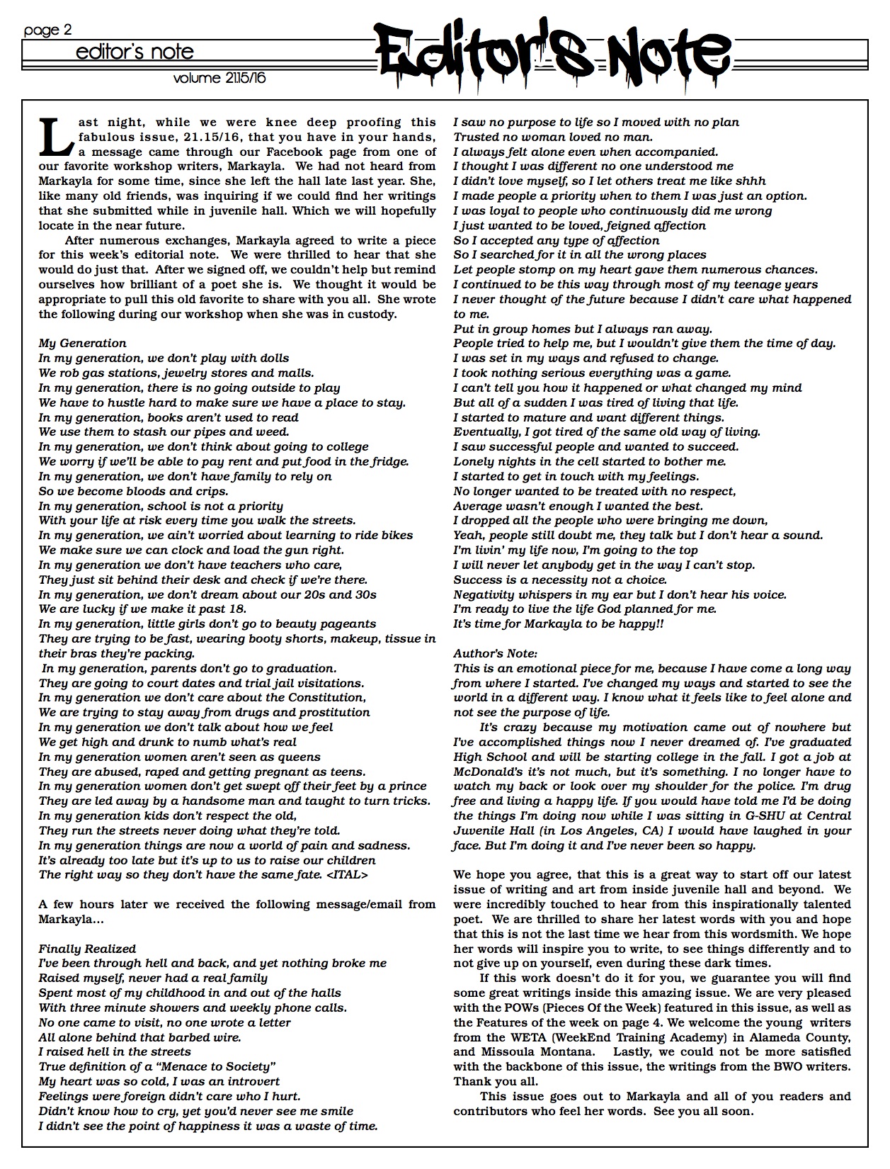 VOLUME 21.15/16 April 19, 2016April 19, 2016 mpau@thebeatwithin.orgLatest Publication Please contact Lisa Lavaysse if you would like to purchase the full PDF or a printed copy of this latest issue. Share this: Share on Facebook (Opens in new window) Facebook Share on X (Opens in new window) X Share on Pinterest (Opens in new window) Pinterest Email a link to a friend (Opens in new window) Email