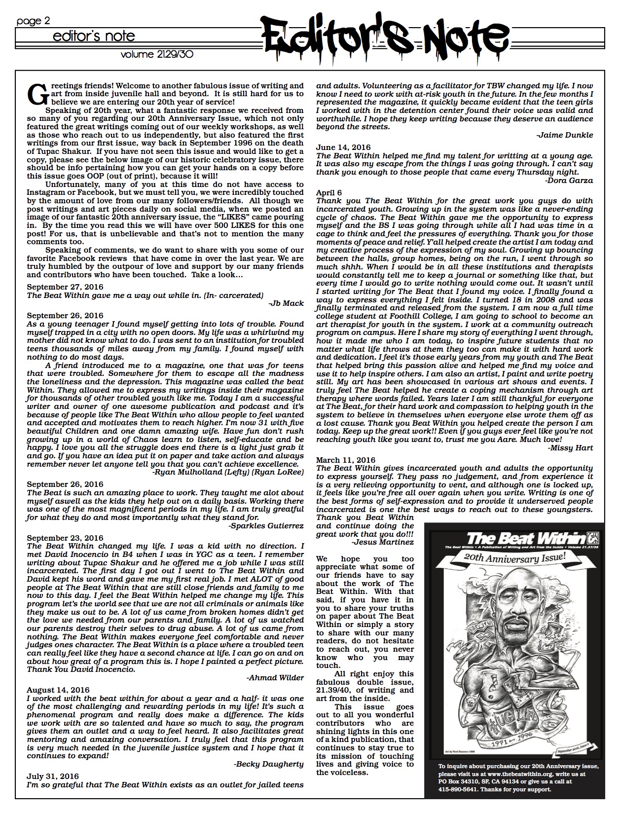 VOLUME 21.39/40 October 19, 2016December 22, 2016 mpau@thebeatwithin.orgLatest Publication Please contact Lisa Lavaysse if you would like to purchase the full PDF or a printed copy of this issue. Share this: Share on Facebook (Opens in new window) Facebook Share on X (Opens in new window) X Share on Pinterest (Opens in new window) Pinterest Email a link to a friend (Opens in new window) Email