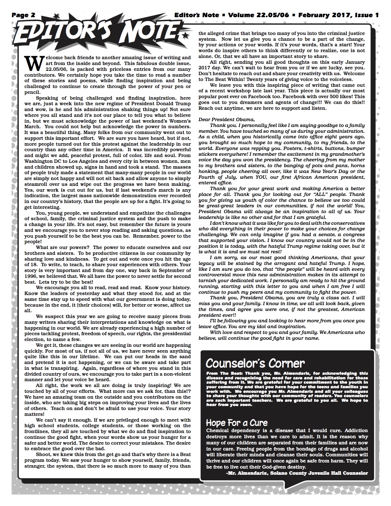 VOLUME 22.05/06 February 1, 2017February 1, 2017 mpau@thebeatwithin.orgLatest Publication Please contact Lisa Lavaysse if you would like to purchase the full PDF or a printed copy of this issue. Share this: Share on Facebook (Opens in new window) Facebook Share on X (Opens in new window) X Share on Pinterest (Opens in new window) Pinterest Email a link to a friend (Opens in new window) Email