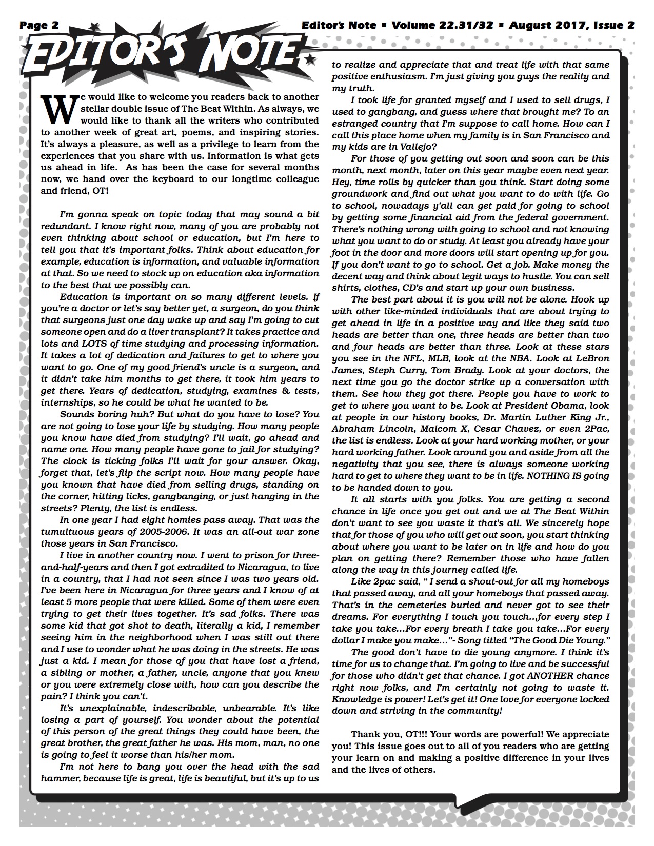 VOLUME 22.31/32 August 3, 2017August 3, 2017 mpau@thebeatwithin.orgLatest Publication Please contact Lisa Lavaysse if you would like to purchase the full PDF or a printed copy of this issue. Share this: Share on Facebook (Opens in new window) Facebook Share on X (Opens in new window) X Share on Pinterest (Opens in new window) Pinterest Email a link to a friend (Opens in new window) Email