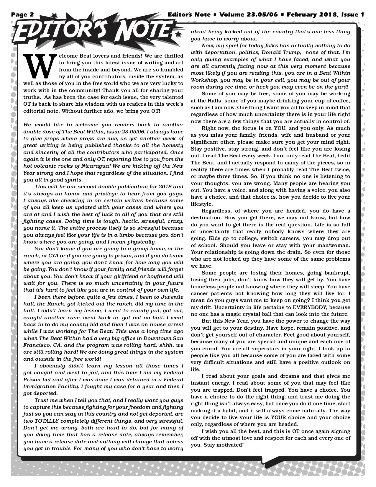 VOLUME 23.05/06 February 6, 2018February 6, 2018 mpau@thebeatwithin.orgLatest Publication Please contact Lisa Lavaysse if you would like to purchase the full PDF or a printed copy of this issue. Share this: Share on Facebook (Opens in new window) Facebook Share on X (Opens in new window) X Share on Pinterest (Opens in new window) Pinterest Email a link to a friend (Opens in new window) Email