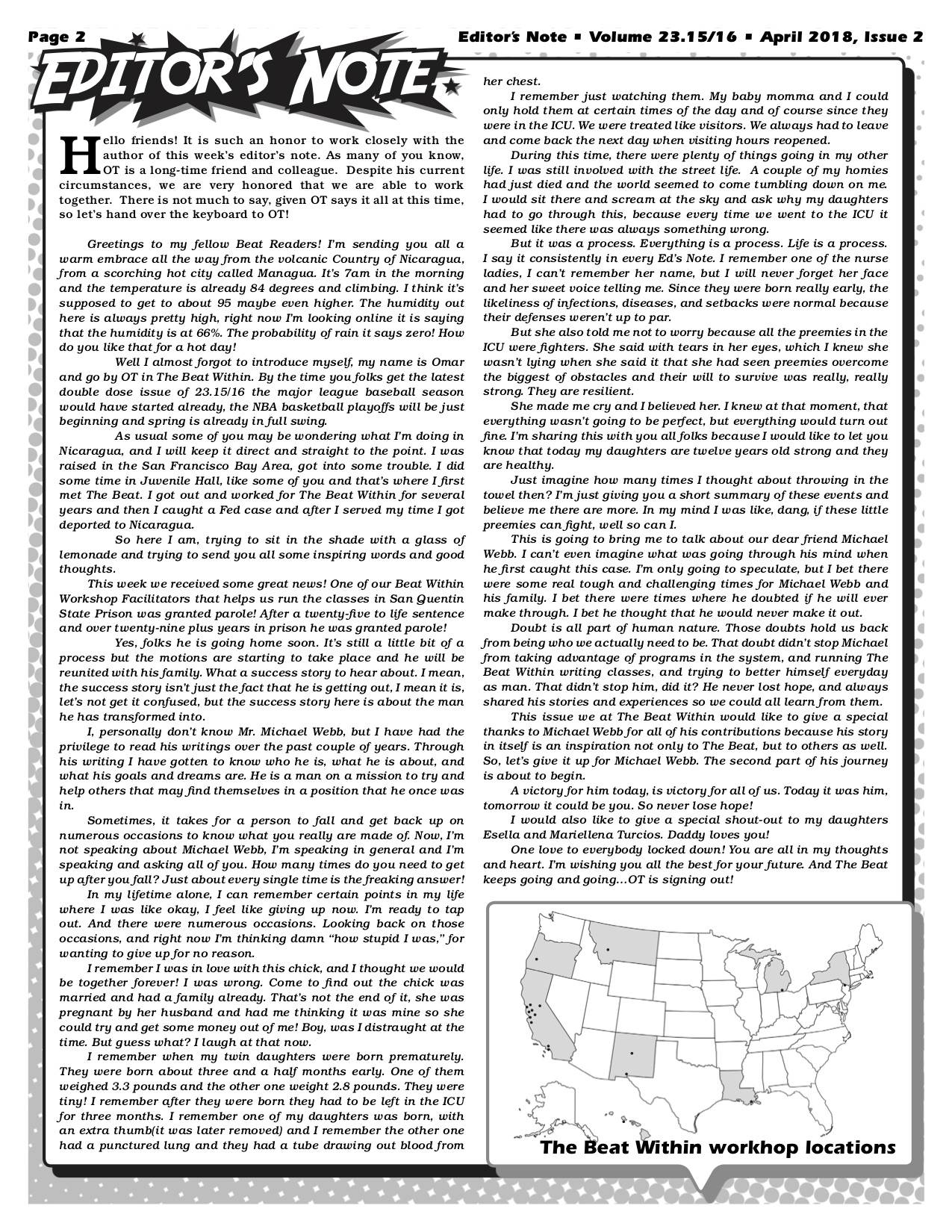 VOLUME 23.15/16 April 18, 2018April 18, 2018 mpau@thebeatwithin.orgLatest Publication Please contact Lisa Lavaysse if you would like to purchase the full PDF or a printed copy of this issue. Share this: Share on Facebook (Opens in new window) Facebook Share on X (Opens in new window) X Share on Pinterest (Opens in new window) Pinterest Email a link to a friend (Opens in new window) Email